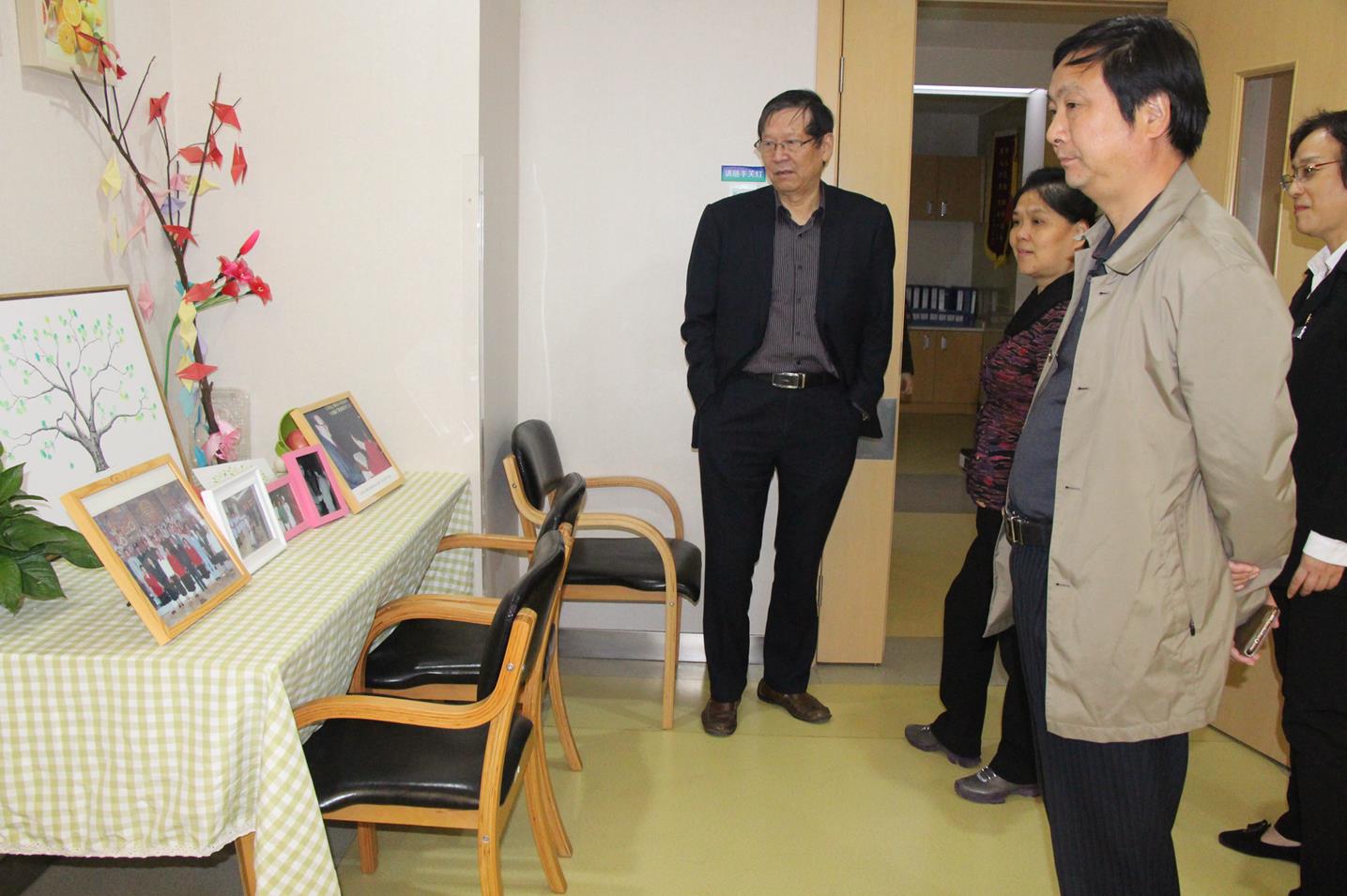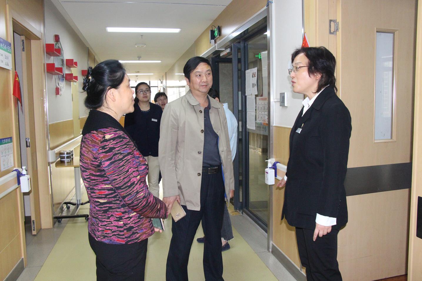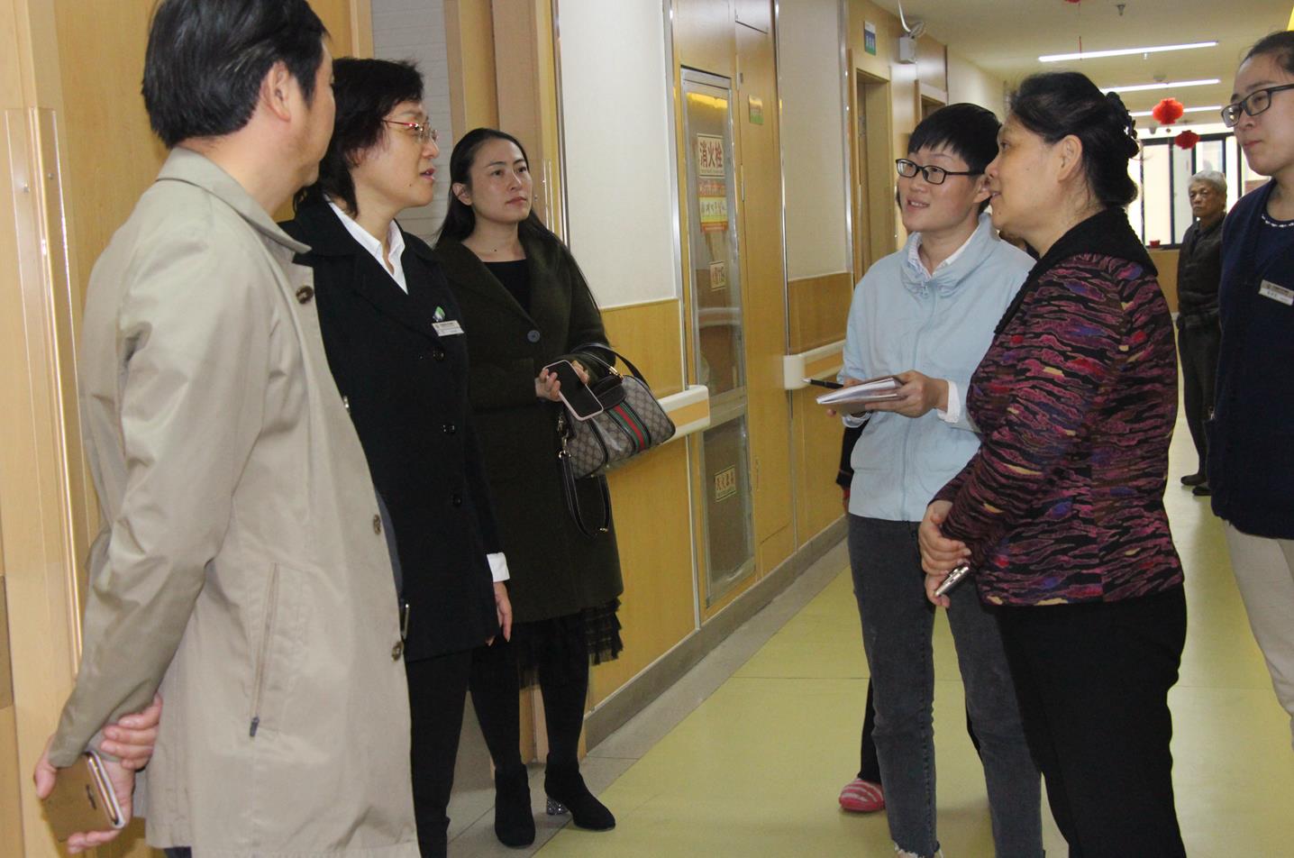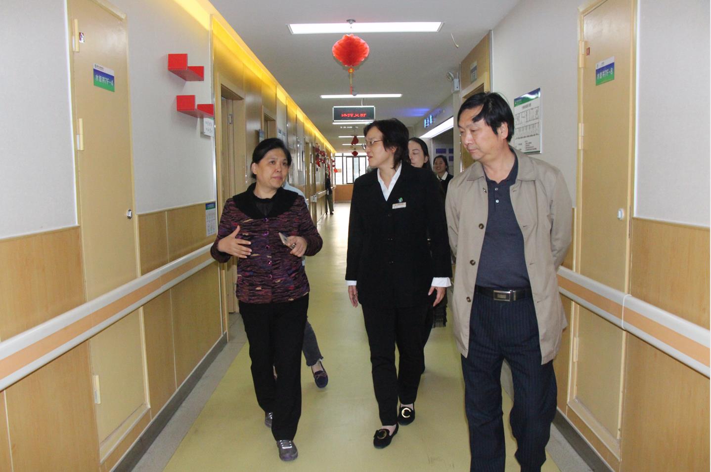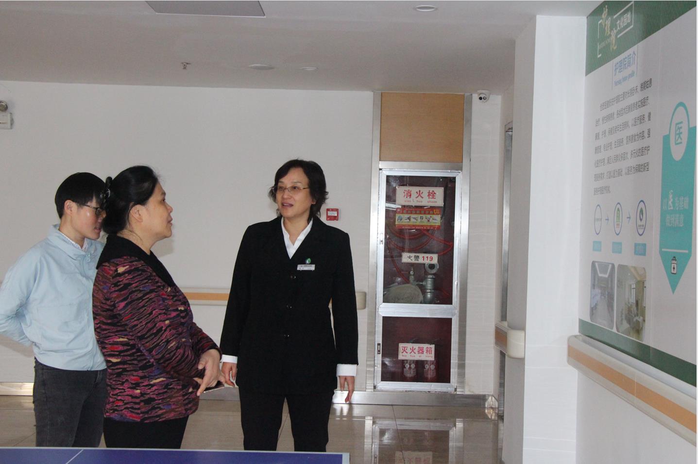 我院党支部书记周红女士与业务院长高宗良主任陪同调研参观,介绍了护理院工作宗旨、服务理念,并且展示了护理院的基本设施、服务团队等。