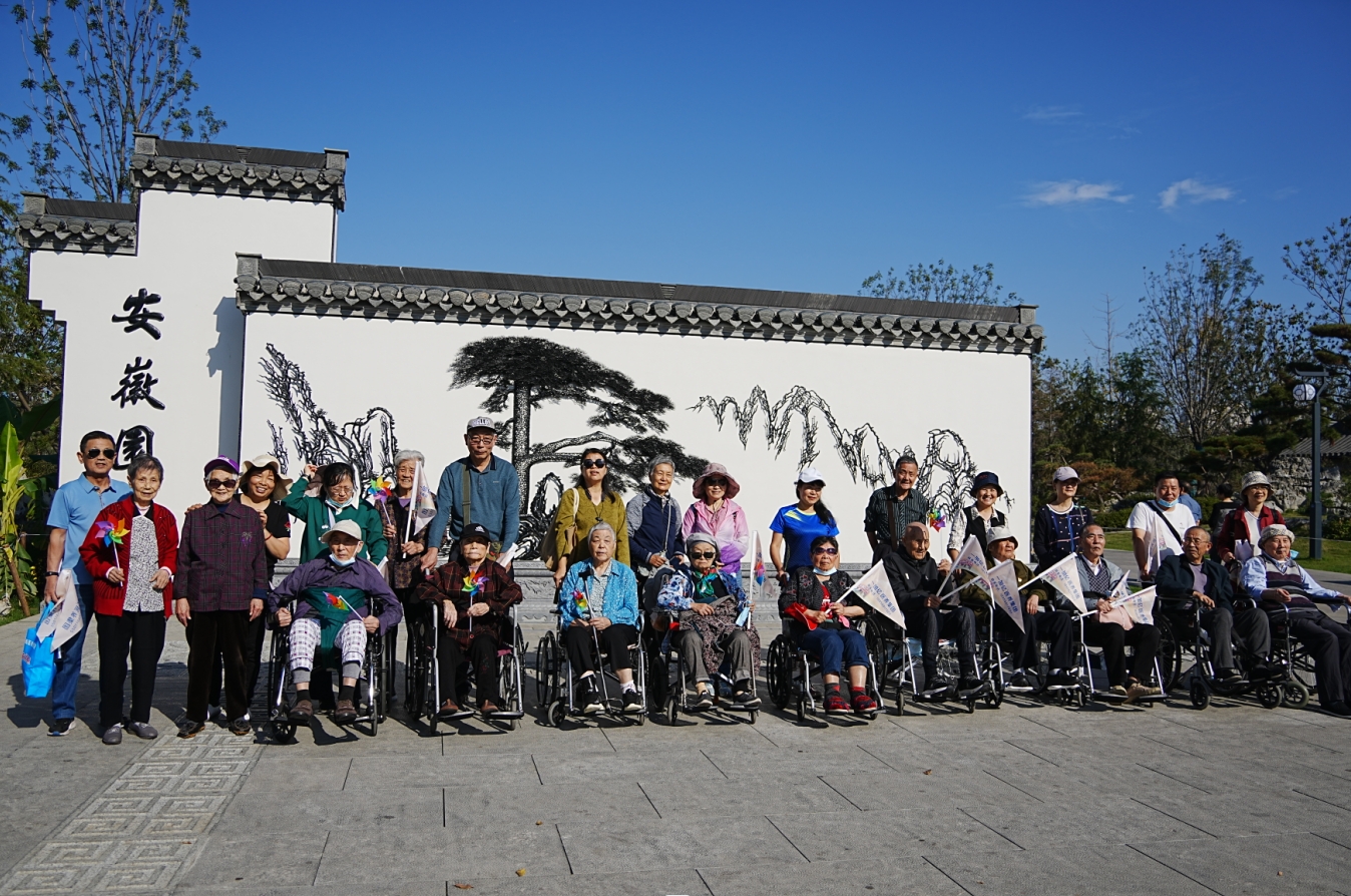 进入园博园的安徽园,呈现在眼前的美景让长者露出了灿烂的笑容,大家边走边看,了解不同地方的园林建筑,个个精神矍铄。长者感受着园博园清新怡人的空气,美丽宜人的秋景,大家笑容满面,心旷神怡,时不时用相机记录美好瞬间。