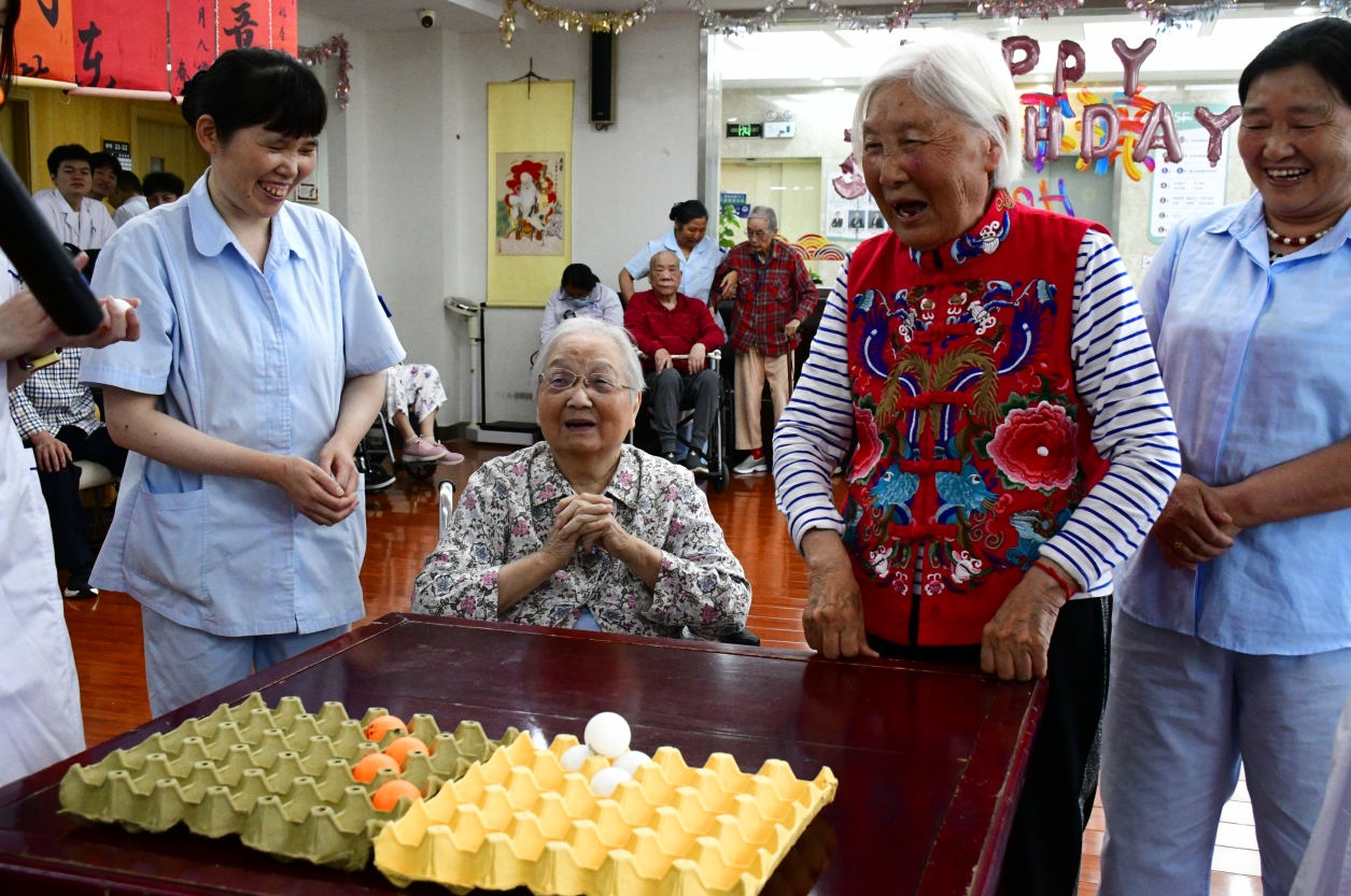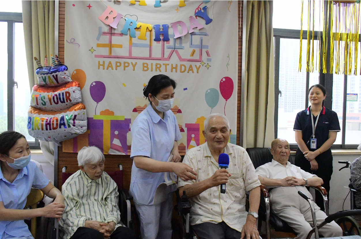 五月,合肥医健新安护理院的长者生日会焕发了新的活力。此次盛会特邀安医护理学院的学生们,与院内长者共同展现才艺。长者们倾情演绎了他们拿手的歌曲与舞蹈,赢得了学生们的阵阵喝彩。在这场欢乐的比拼中,长者们还热情邀请学生们组队参与乒乓弹跳游戏,双方配合默契,笑声不断。当庆祝的时刻到来,长者们围坐在精心准备的生日蛋糕旁,学生们则以悠扬的歌声为长者们送上最诚挚的祝福。这一刻,甜蜜与温馨交织,在每个人心中留下了难忘的印记。