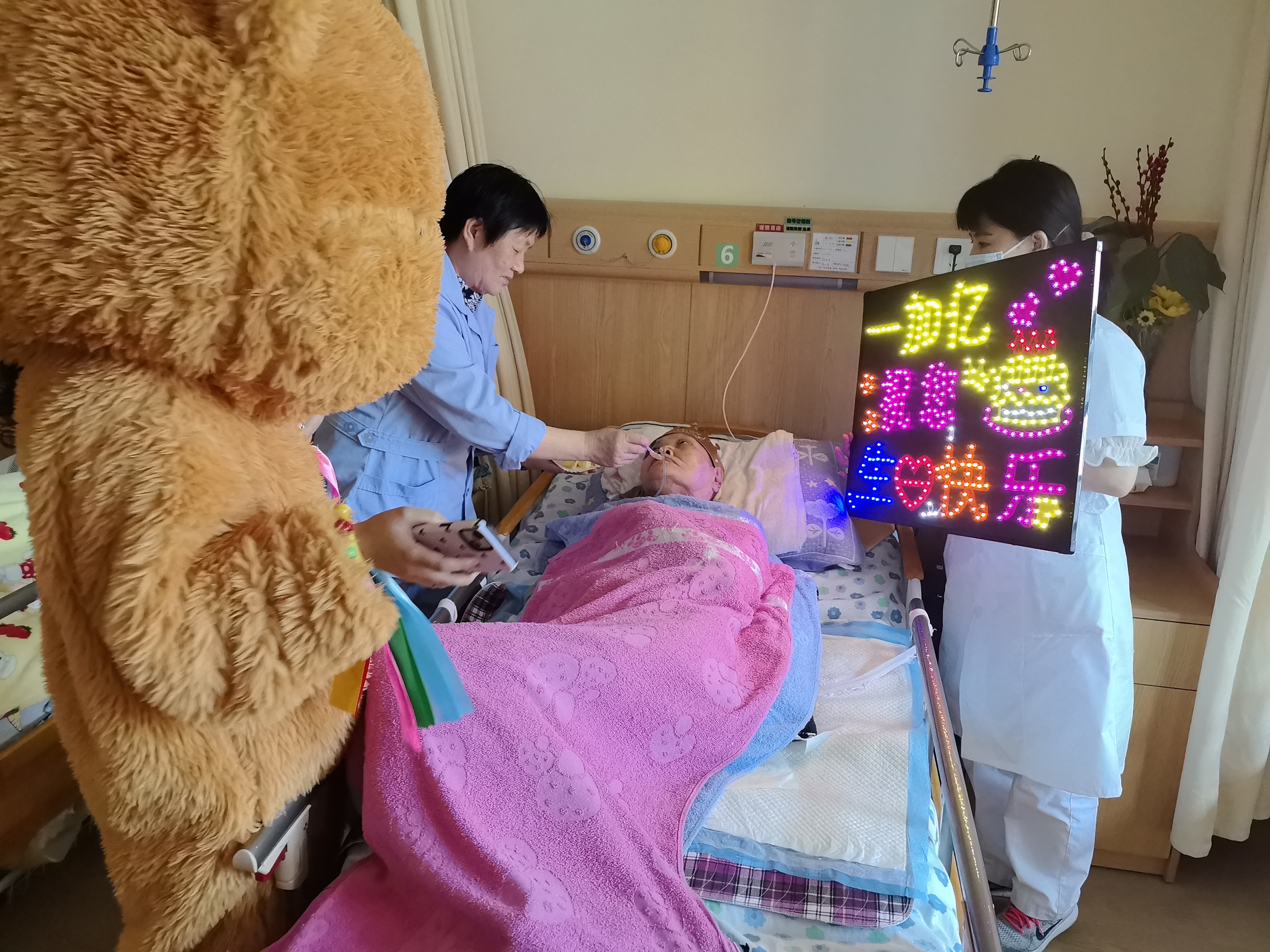 在安庆一加亿综合医养中心,五月的生日会迎来了一位特别嘉宾——网红“黄油小熊”。它不仅深受年轻人喜爱,现在也给爷爷奶奶们带来了欢乐和祝福。生日会上,无论是娱乐互动还是为卧床老人举行的生日仪式,“黄油小熊”都展现出了它的魔力,让每一位老人的脸上都洋溢着幸福的笑容。这个温馨而充满活力的场景,不仅让老人们感受到了节日的喜悦,也让他们的心灵得到了温暖和慰藉。