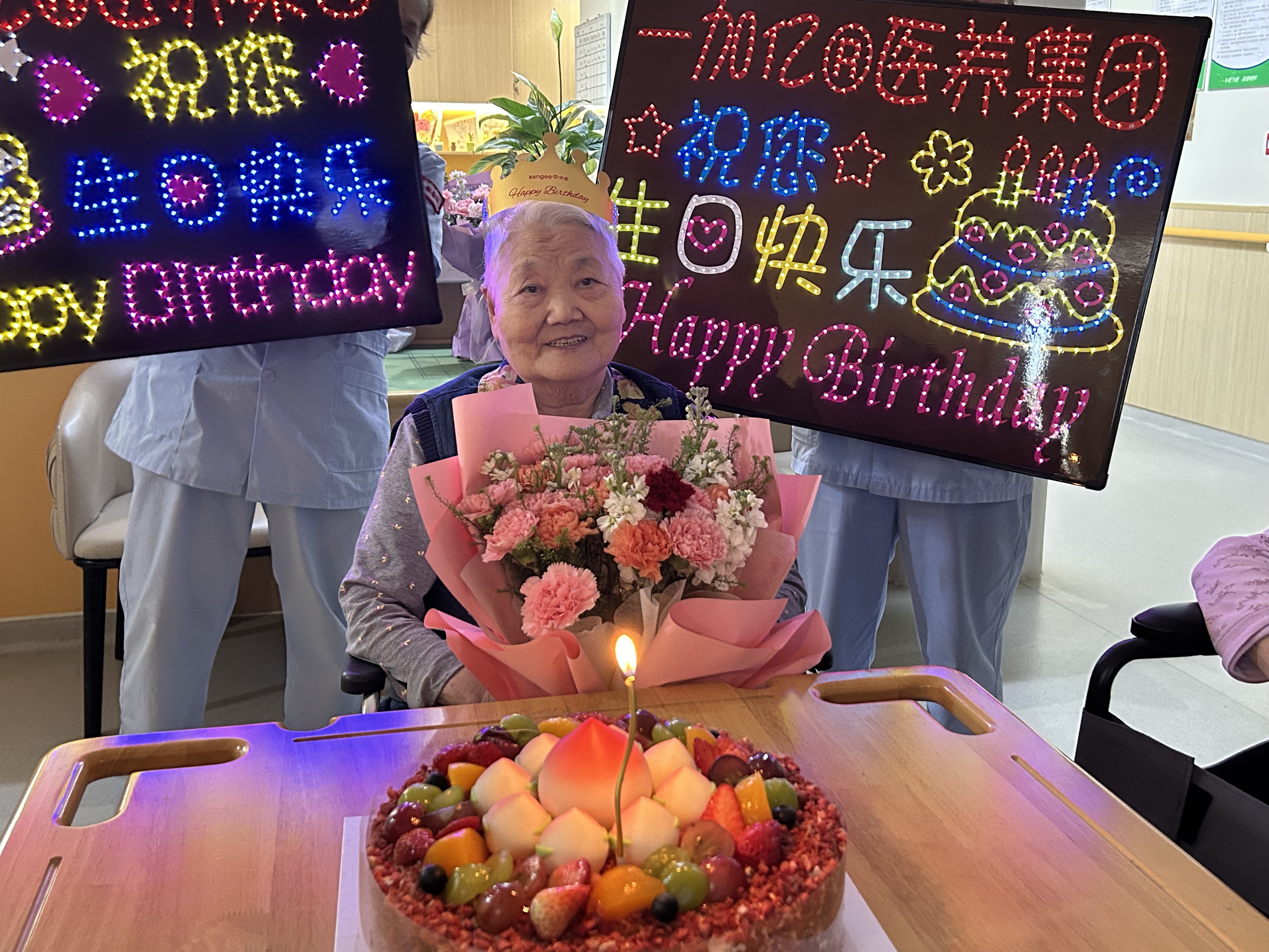 在亿家心安护理院,五月的长者生日会充满了欢声笑语。工作人员精心策划了一场蒙眼铲纸游戏,让每位长者都沉浸在欢乐的海洋中。他们的笑容如同孩童般纯真,尽情享受着游戏的乐趣。当游戏落幕,所有人聚在一起,为五月生日的长者们送上最温馨的祝福。鲜花与蛋糕环绕着他们,将这份特别的爱传递给每一位“老小孩”。在亿家心安护理院,我们的长者们永远是最幸福、最快乐的宝贝。